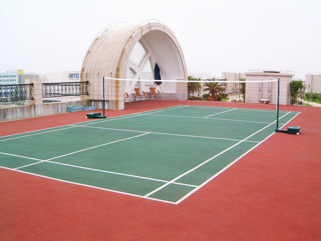 8、平坦性:施工時(shí)使用自流平材料,表面平坦,能符合特別平坦的比賽塑膠籃球場地要求。